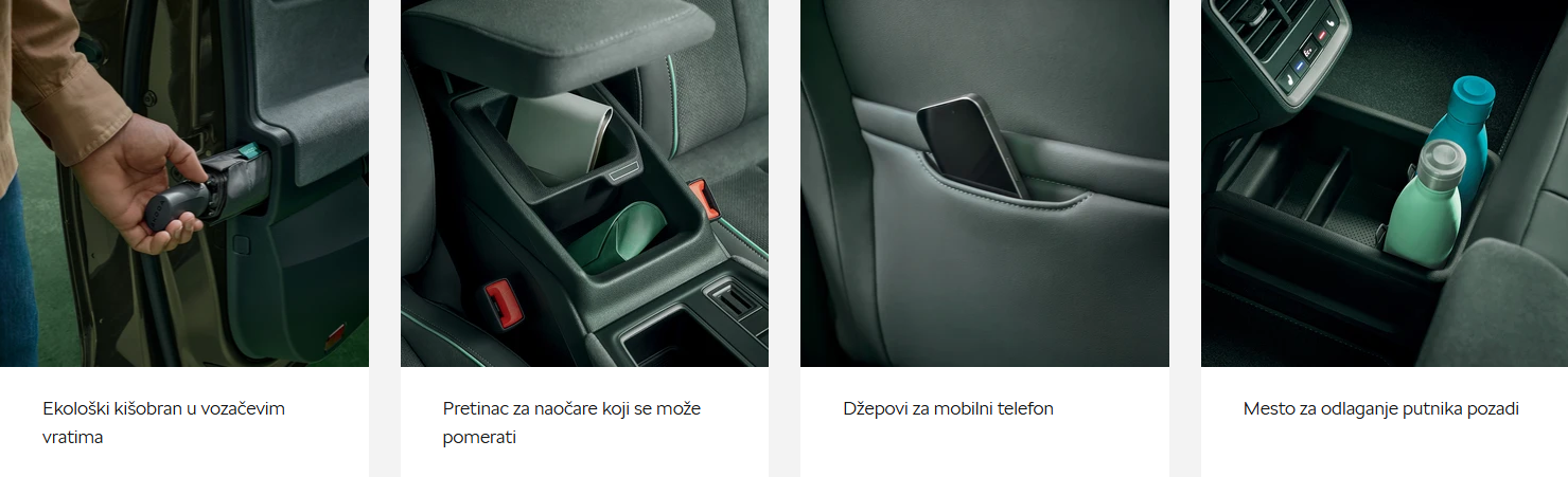 Bilo da idete na poslovni sastanak ili na porodični izlet, u modelu Enyaq uvek ćete se osećati kao kod kuće. Veliki prostor kabine, širok spektar mogućnosti povezivanja i najnovija tehnologija u kombinaciji sa visokokvalitetnim održivim materijalima čine svaku vožnju jedinstvenim iskustvom.